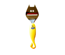 Créateurs : J. Hansen et F. Person pour SKS Design GmbH (Blomus), Fun and Fantasy - Cheese Devil, tranchette à fromage en forme de chat - en acier inoxydable et résine jaune - 22x6.5x2 cm